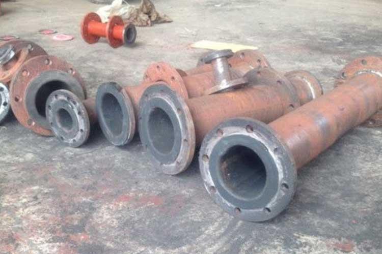 襯膠管道管件重量輕,安裝方便由于機體管采用薄壁管,重量相對輕,安裝時其連接方法可采用:法蘭連接、柔性管接頭連接、焊接連接,采用整體翻邊工藝,不會出現(xiàn)脫落、脫空和局部撕裂現(xiàn)象,水穩(wěn)定性好,它不會像橡膠制品一樣在水中會發(fā)生溶脹現(xiàn)象而影響使用性能